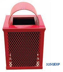 We offer a square expanded metal receptacle that comes complete as shown with a square liner and a removable arch lid.